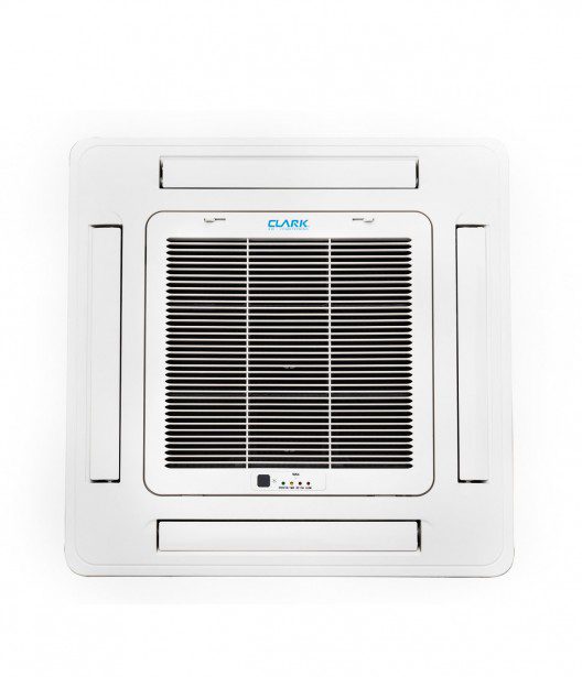 Equipo A/A Split Cassette Convencional, refrigerante R-410A. Especial para ser utilizado en oficinas, casas comerciales y en general ligares o espacios donde cuenten con cielo falso. La mayor parte de la unidad se encuentra escondida entre el cielo falso y el techo, resultando más estético y menos invasivo.